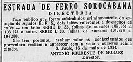 ACIMA: Roubo na estação (Correio de S. Paulo, 19/5/1934)