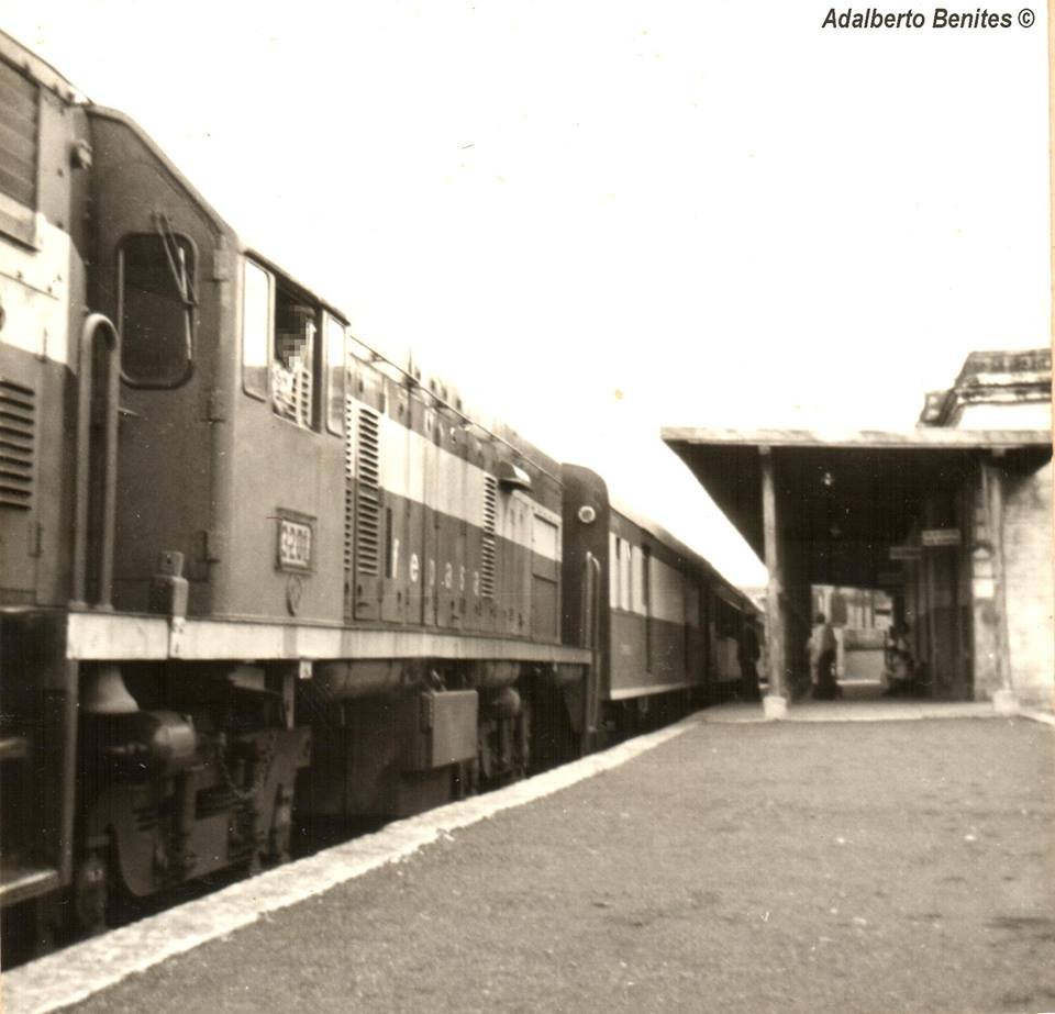 1976. Ao lado, um destes trens está parado na plataforma