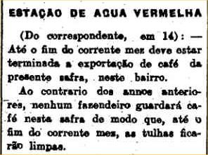 em Água Vermelha em 1909 (O Estado de S. Paulo, 16/11/1909).