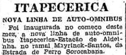 AO LADO: Onibus para que o centro do municipio de Itapecerica conseguisse utilizar sua afastada estação ferroviaria em Aldeinha