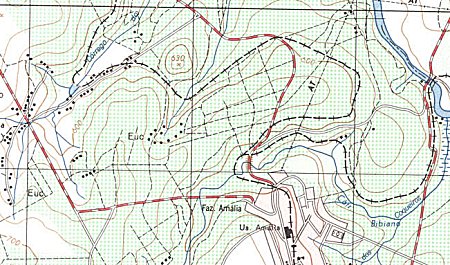 no sentido de Cajuru. A linha que seguia para nordeste e depois viraria