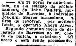 AO LADO: A estação nem estava pronta, nem nome ainda tinha e já era palco de um crime (O Estado de S. Paulo, 22/12/1925) |