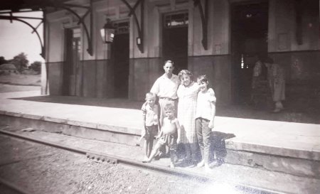 ACIMA: O chefe da estação, Pacheco, posa com a família em frente a Amoreira nos anos 1960 (Foto Maria Luiza Pacheco).