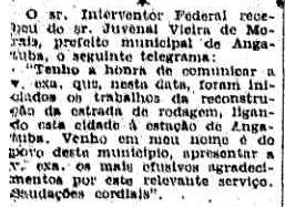 "Grande parte do trecho entre Itapetininga e Avaré (uma retificação da linha-tronco que jamais foi construída) seria cortado dentro de Angatuba, próximo à sede do município, passando pela antiga fazenda Aterradinho, que até a década de 1940 era uma grande fábrica de algodão, tanto de fibra como óleo! Fora que havia muita madeira disponível... Angatuba era uma cidade grande para a época, mais de 15 mil habitantes, tinha influência junto com Itapetininga. Infelizmente depois da derrubada de Júlio Prestes, a região padeceu de investimentos e até hoje está abandonada pelo governo estadual. Havia solicitações da Câmara Municipal desde 1915 para que a EFS fizesse um acesso a sede, já que a ferrovia passava 14 km ao sul. Era mais fácil ir até Itapetininga, 40 km do que na estação, o acesso era impraticável. Angatuba só saiu do isolamento em 1968 quando asfaltaram o acesso da cidade até a Raposo Tavares, concluída 10 anos antes e desviada do centro da cidade devido a obra da Represa Jurumirim (Plensir, 16/5/2017).