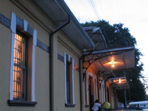 A fachada da estação no começo da noite