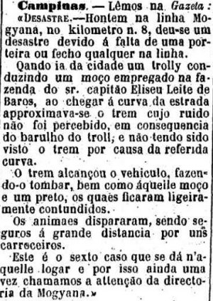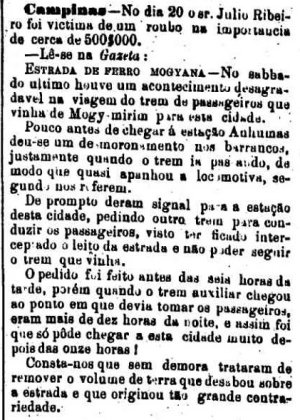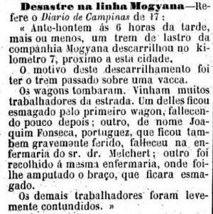 AO LADO: Descarrilamento em Anhumas e outras noticias de Campinas (A Provincia de S. Paulo, 3/3/1892). |