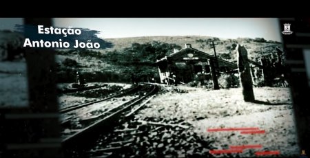 ACIMA: A antiga estação de Antonio João em data ignorada (Extraido de EP 1/6 - Fiação SulAmericana - YouTube, em 09/03/2022 - documentário sobre a Fiação SulAmericana, em Caprapicuíba).