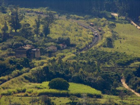 um destes trens está na serra (cuesta) de Botucatu, tracionado