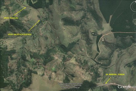 por estrada de chão a partir da rodovia Marechal Rondon (no