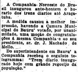 Estrada de Ferro Noroeste do Brasil foi aberta em 1906, seguindo a