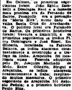 em 1908 Araçatuba e em 1910 atingia as margens do rio Paraná,
