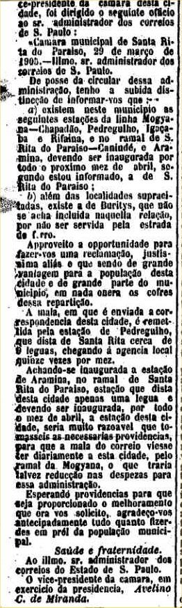 ainda Santa Rita do Paraizo. Em 1914, atingiria a linha do Catalão,