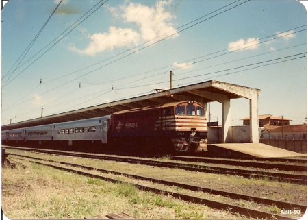 Trem PS 6 da FEPASA na Estação de Avaré em abril de 1990 (Foto