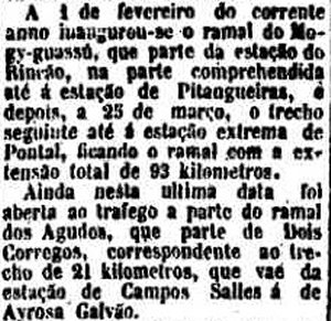 1887, saindo de Dois Córregos, no ramal de Jaú, e atingindo a estação