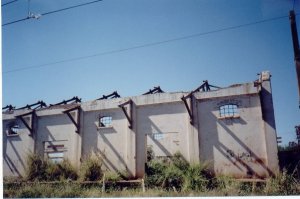 O armazém já depredado, ao lado da estação,