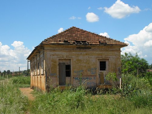 Ao lado da estação, fica o armazém, depredado, e uma casa que parece
