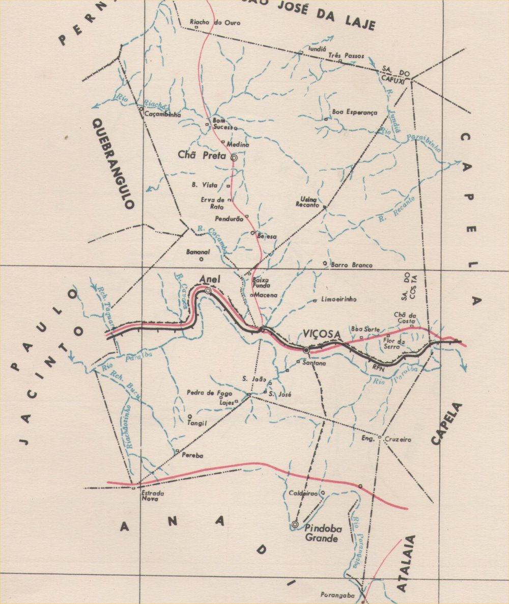 em 1891 avançou até Viçosa, em 1912 em Quebrangulo.