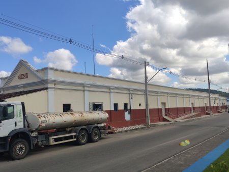 ACIMA: O enorme armazem ferroviario de Viçosa em 2020 (Foto Rodrigo Henrique em 17/12/2020).