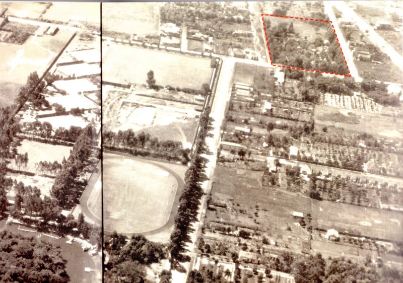 a oeste. O terreno marcado é onde seria construída mais tarde