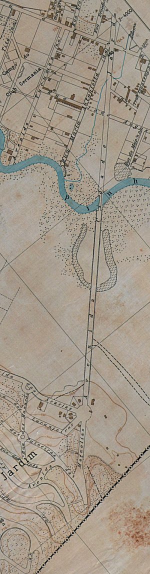 Pinheiros e continuava em linha reta (e não como hoje, com uma ponte