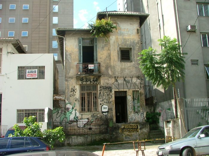 Casa abandonada no lado par da rua, entre a Vergueiro e