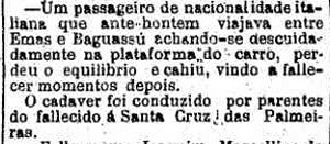 italiana que "ante-hontem viajava entre Emas e Baguassú achando-se