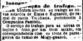 AO LADO: Abrem-se ao tráfego as estações de Emas e de Baguassu. (O Estado de