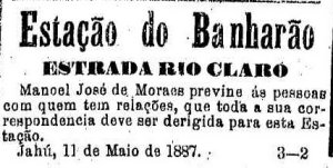 original de Banharão deveria ter sido inaugurada pela E. F. Rioclarense em 1/1/1887, como ponta da linha do então ramal de Jaú. Porém, algo aconteceu e a inauguração acabou sendo adiada para o dia 19 de fevereiro de 1887 (ver caixas abaixo de 1887).