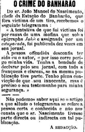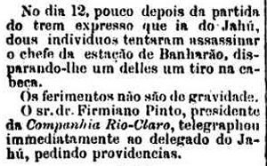 AO LADO: Atentado contra o chefe da estação (A Provincia de S. Paulo, 15/6/1888). |