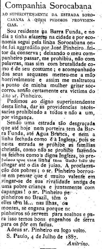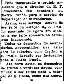 AO LADO: O problema das porteiras para automóveis e vsículos em geral na estação da Barra Funda da EFS- CLIQUE SOBRE O TEXTO PARA VER TODA A REPORTAGEM (O Estado de S. Paulo, 02/03/1917). |