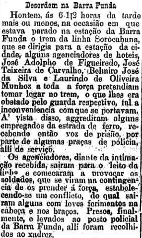 AO LADO: Desordem na estação ds SPR, utilizada pela Sorocabana nesse dia pelo menos (O Estado de S. Paulo, 29/12/1898). |