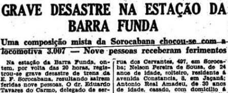 NA FOTO PARA AMPLIAR) Desastre ferroviário na estação da Barra Funda em 1949 (O Estado de S. Paulo, 29/3/1949).