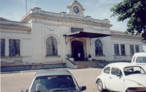 Em 29/12/1999, a fachada da estação de Barretos.