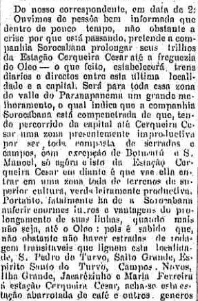 AO LADO: Já se discutia a demora no prolongamento de Cerqueira Cesar até Óleo, que afinal somente sairia dez anos depois (quw - CLIQUE SOBRE A FIGURA PARA VER TODA A REPORTAGEM(O Estado de
