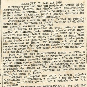 AO LADO: Parecer para a desapropriação de um terreno junto à estação para a construção de um novo triângulo. Não consegui encontrar algo que confirmasse a execução da obra citada - CLIQUE SOBRE O TEXTO PARA VÊ-LO AUMENTADO (Diario Oficial de São Paulo, parecer 553, de 1946). |