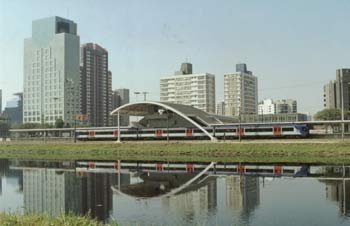 Estação Berrini, vista do outro lado do rio Pinheiros,