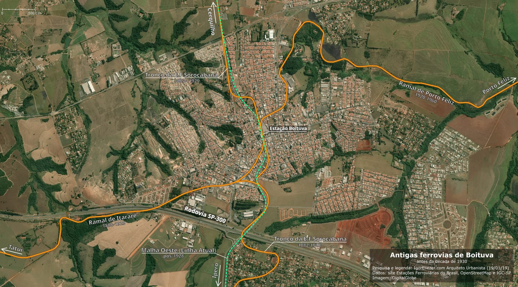 ACIMA: Os ramais de Boituva até 1928 (CLIQUE SOBRE O MAPA PARA VÊ-LO BEM) (Montagem Igror Eliezer em 2018).