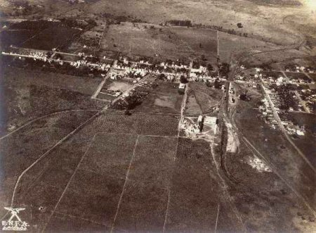 ACIMA: Vista aérea da pequena Boituva em 1939. A linha