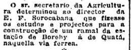a falar no ramal Borebi-Quatá (Folha da Manhã,