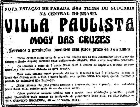 Anúncio de jornal de 1924 mostra novo loteamento, o Villa Paulista,