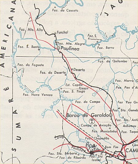Geraldo neste mapa, traçado em 1958, que mostra as linhas do