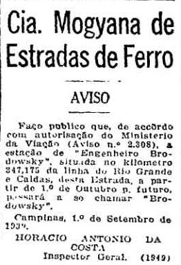 Brodowski", Engenheiro Brodowski, 24 de junho de 1904 - nro. 28).