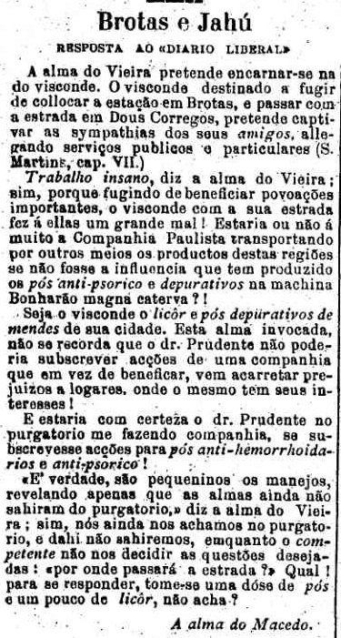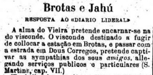 AO LADO: A população não está satisfeita com a estação longe da vila (A Provincia de S. Paulo, 9/2/1887). |