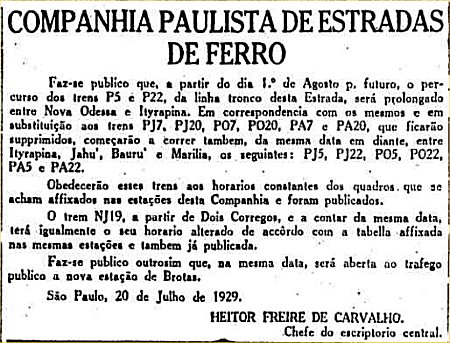 de Brotas (O Estado de S. Paulo, 23/7/1929).