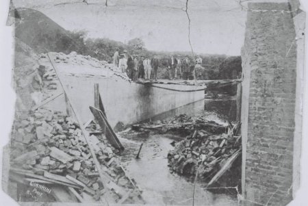 ACIMA: Acidente (desabamento de uma ponte ferroviaria) na linha nova ainda em construção (ou teria sido na linha velha?) em Brotas: seis mortos (Emilio Belotto, João Barros, João Trentini, Manoel Martinho de Oliveira, Paschoalç Montanare e Manuel dos Santos Gabriel). "O referido acidente ocorreu em 15 de outubro de 1929, pois além de pesquisas em jornais da época, consegui, através do cartório de Brotas, os atestados de óbitos de 5 dos operários mortos, cujo declarante foi meu avô paterno, João Arlanch. Na página a que o link acima conduz, há uma nota do Chefe do Escritório Central da Companhia Paulista de Estradas de Ferro, Sr. Heitor Freire de Carvalho, dando conta que a nova estação de Brotas entraria em operação em 20 de julho de 1929, portanto, antes que a tal ponte estivesse concluída" (Texto: Rogério Arlanch Filho, em 2022; Foto Giannini em 29/9/1929).