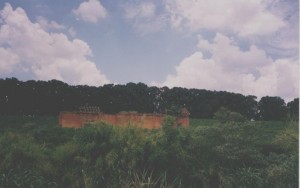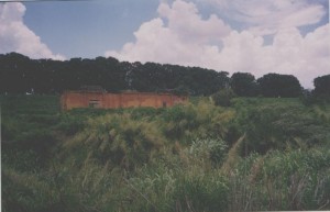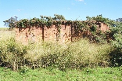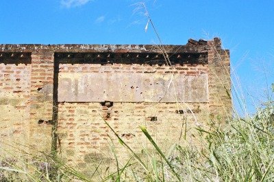 sem portas, janelas e com parte do telhado desabado, ao lado do ribeirão Preto, e a cerca de um quilômetro antes de se chegar às casas