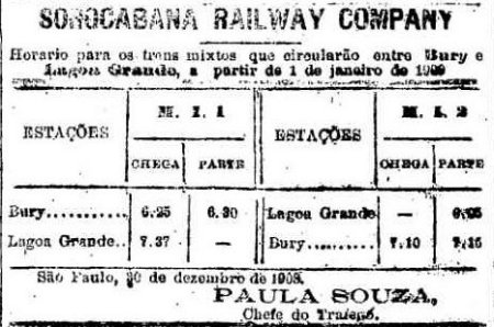 ACIMA: Trem misto de Bury a Lagoa Grande na inauguração da estação de Lagoa Grande em 1909 (Engenheiro Bacellar) (O Estado de S. Paulo, 2/1/1909).