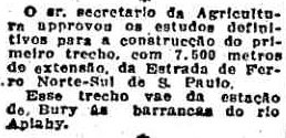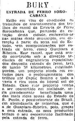 do ramal de Buri (O Estado de S. Paulo, 9/9/1938).