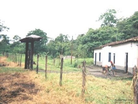ACIMA: A parada da Serra Verde ficava aqui. O portão de telhas teria sido a cobertura da paradinha ou nada teria a ver com ela, ela seria outra construção? (Foto Paulo Miled, em abril de 2015).