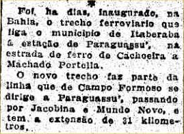 trecho chegou a Pindobaçu até 1937, quando chegou a